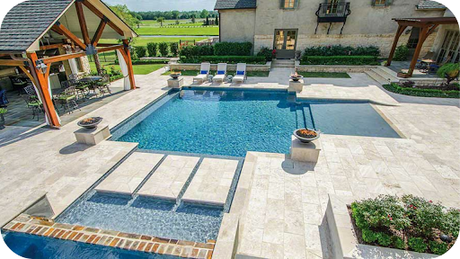 Examples, including Selene Limestone and Classic Travertine, remain cool, stable, and inviting underfoot. Their gentle texture and natural hue bring comfort and sophistication to pool areas and outdoor spaces.